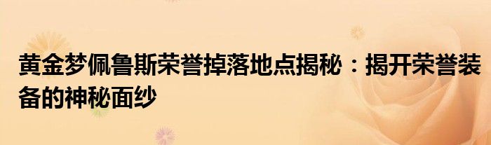 黄金梦佩鲁斯荣誉掉落地点揭秘:揭开荣誉装备的神秘面纱