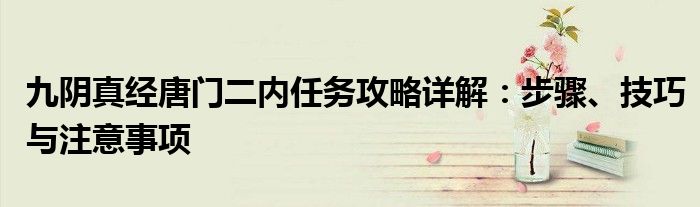本文将详细介绍在九阴真经游戏中的唐门二内任务的攻略,帮助玩家更好地理解任务流程,掌握完成任务的关键步骤和技巧,以及需要注意的事项。