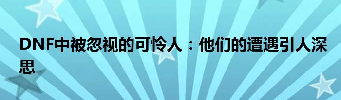 DNF中被忽视的可怜人:他们的遭遇引人深思