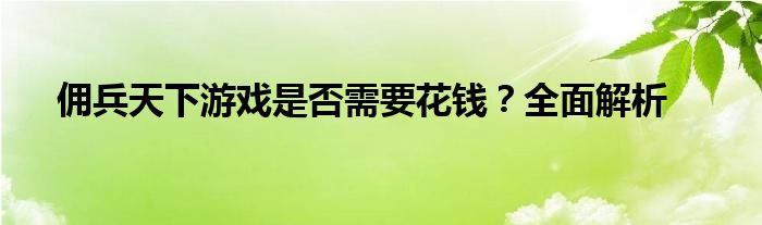 关于《佣兵天下》这款游戏是否需要花钱的问题,实际上取决于你玩的游戏版本和游戏内的消费选择。