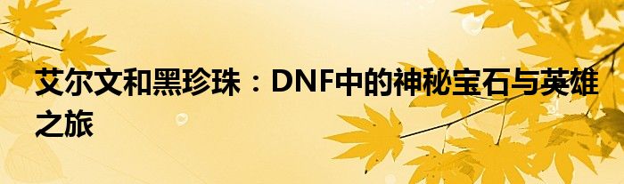 艾尔文和黑珍珠:DNF中的神秘宝石与英雄之旅