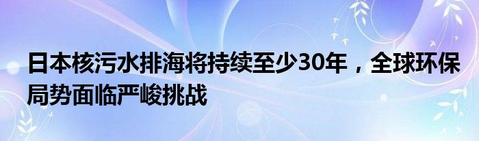 日本核污水排海将持续至少30年,全球环保局势面临严峻挑战
