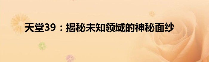 天堂39:揭秘未知领域的神秘面纱