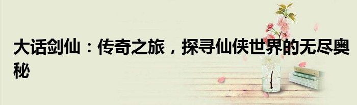 大话剑仙:传奇之旅,探寻仙侠世界的无尽奥秘
