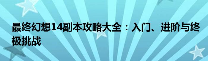 最终幻想14副本攻略大全:入门、进阶与终极挑战