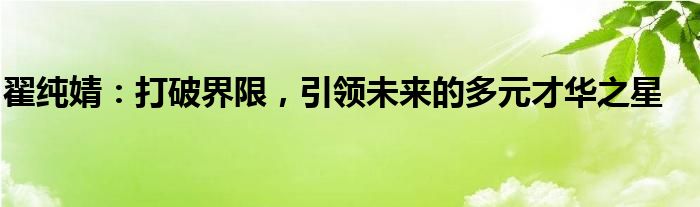 翟纯婧:打破界限,引领未来的多元才华之星