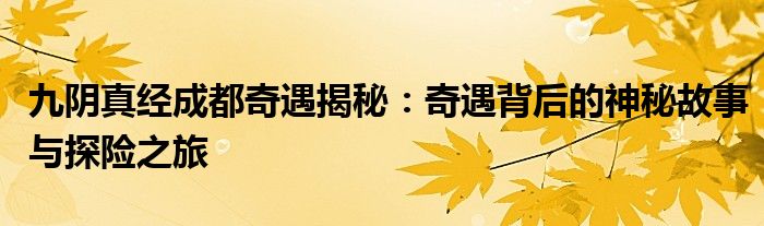 九阴真经成都奇遇揭秘:奇遇背后的神秘故事与探险之旅