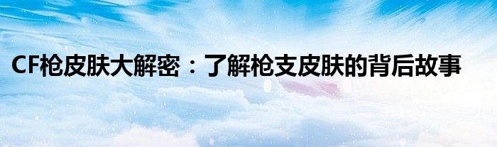 CF枪皮肤大解密:了解枪支皮肤的背后故事