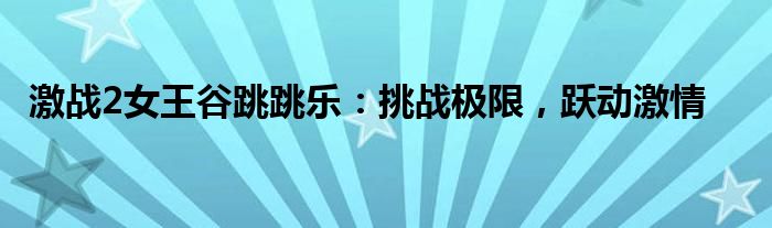 总之,《激战2女王谷跳跳乐》是一项充满挑战与乐趣的活动。在这里,你可以挑战自我,展示自己的跳跃技巧与反应能力,感受跃动激情的快感。加入游戏,一起挑战极限吧!