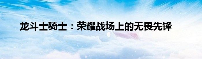 总之,龙斗士骑士是荣耀战场上的无畏先锋,他们用自己的勇气、智慧和团队精神挑战一切困难。他们是真正的战斗英雄,也是我们学习和追求的目标。
