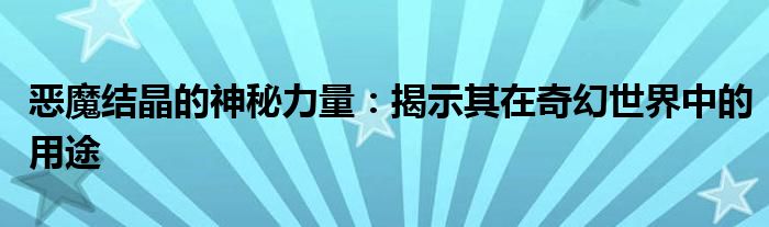 恶魔结晶的神秘力量:揭示其在奇幻世界中的用途