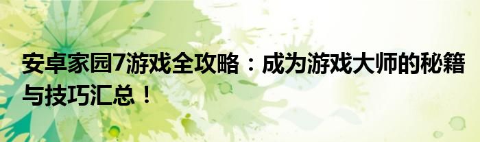 安卓家园7游戏全攻略:成为游戏大师的秘籍与技巧汇总!