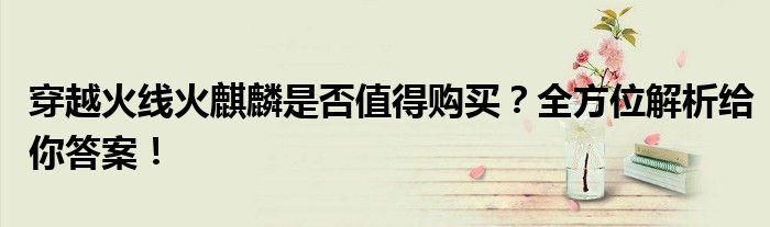 穿越火线火麒麟是否值得购买?全方位解析给你答案!
