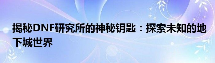 本文将围绕“DNF研究所钥匙”这一主题展开,深入解析其背后的故事、功能以及获取方式,带领读者一起探索神秘的地下城世界。