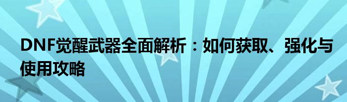 DNF觉醒武器全面解析:如何获取、强化与使用攻略