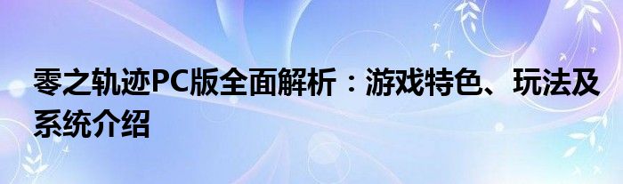 本文将为大家带来关于“零之轨迹PC版”的全面解析,包括游戏特色、玩法及系统介绍。作为一款备受期待的游戏,零之轨迹PC版在玩家群体中拥有广泛的影响力,本文旨在帮助玩家更好地了解这款游戏。