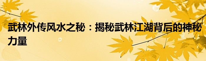 本文将深入探讨武林外传中的风水之秘,探寻江湖背后隐藏着的神秘力量。我们将从多个角度出发,详细解读武林外传中风水的重要性以及它如何影响江湖命运。通过深入分析,让我们领略武林外传中的风水之秘,感受神秘力量带来的震撼。