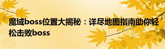 以上就是我们为你准备的“魔域boss位置大揭秘:详尽地图指南助你轻松击败boss”的全部内容,希望对你的游戏生涯有所帮助。