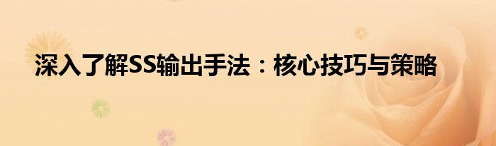 深入了解SS输出手法:核心技巧与策略