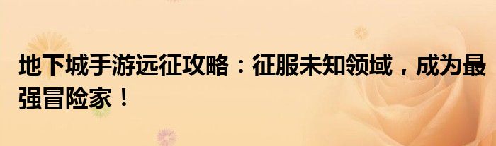 通过本文的攻略,希望能帮助大家在《地下城手游》远征中更加顺利。记住,成为最强冒险家的路上充满挑战,但只要我们勇敢前行,不断学习和进步,最终一定能够征服未知领域,实现我们的冒险梦想!