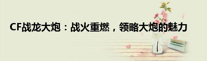 CF战龙大炮:战火重燃,领略大炮的魅力