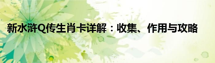 在《新水浒Q传》这款游戏中,生肖卡成为了玩家间关注的焦点之一。通过生肖卡,玩家不仅可以提升角色能力,还能在游戏中体验到更多的乐趣。本文将详细介绍新水浒Q传中的生肖卡,包括其收集方式、作用以及如何有效利用。