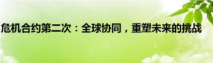 总之,危机合约第二次的实施需要我们全球协同努力,共同应对挑战和机遇。通过加强沟通与合作、提出创新策略和实施行动方案等措施,我们可以共同重塑未来,实现可持续发展。