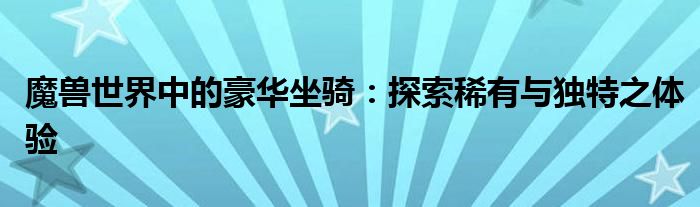 魔兽世界中的豪华坐骑:探索稀有与独特之体验