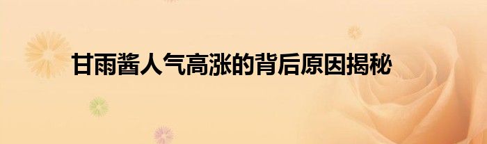 甘雨酱作为一个备受瞩目的公众人物,其人气不断攀升,吸引了众多粉丝的关注。那么,甘雨酱为何能够赢得如此高的人气呢?下面我们就来揭秘其背后的原因。
