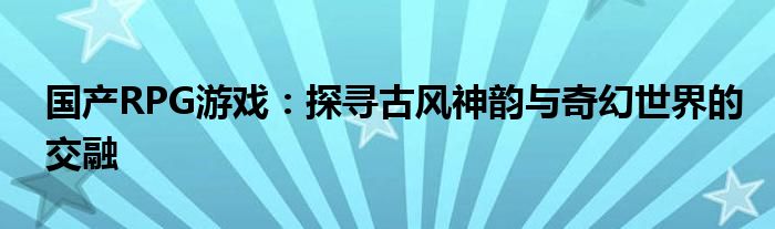 国产RPG游戏:探寻古风神韵与奇幻世界的交融