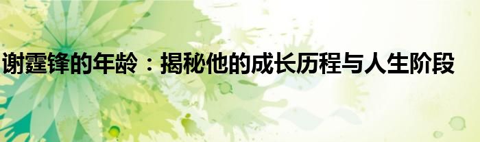 谢霆锋,这位华语乐坛和影坛的璀璨明星,早已成为无数粉丝心中的偶像。他的才华横溢、多才多艺,不仅在音乐、电影领域取得了骄人的成绩,还在美食、商业等多个领域展现了自己的独特魅力。而关于他的年龄,也是众多粉丝关注的焦点。今天,我们就来一起揭秘谢霆锋的年龄,以及他的成长历程与人生阶段。