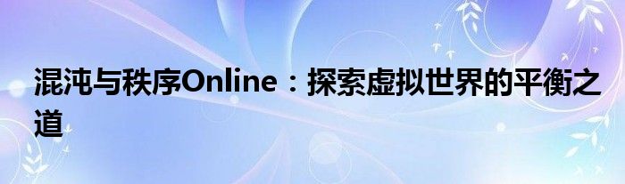混沌与秩序Online:探索虚拟世界的平衡之道