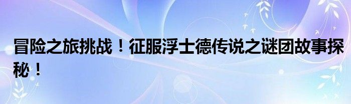 冒险之旅挑战!征服浮士德传说之谜团故事探秘!