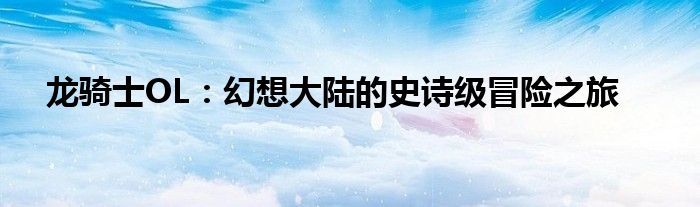 龙骑士OL:幻想大陆的史诗级冒险之旅