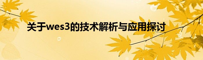 本文将深入探讨关于wes3的技术解析与应用探讨。随着科技的快速发展,wes3作为一种新兴技术已经逐渐获得了广泛的应用。我们将从其基本概念、应用领域以及发展前景等方面,详细介绍wes3的重要性和优势。
