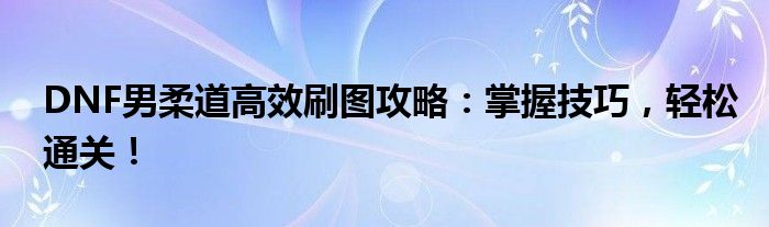 DNF男柔道高效刷图攻略:掌握技巧,轻松通关!
