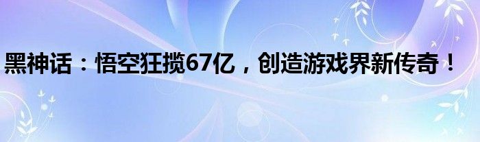 黑神话:悟空狂揽67亿,创造游戏界新传奇!