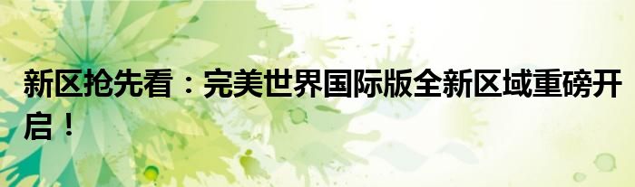 新区抢先看:完美世界国际版全新区域重磅开启!
