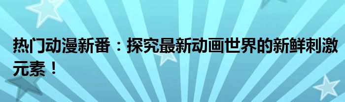 热门动漫新番:探究最新动画世界的新鲜刺激元素!