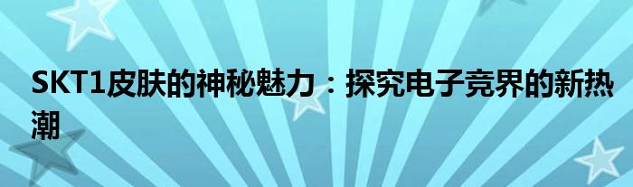本文将围绕“SKT1皮肤”这一关键词,深入探讨其在电子竞界领域的影响及魅力。作为众多游戏爱好者所追逐的热门话题,SKT1皮肤在游戏设计、玩家体验以及市场价值等方面都有着独特的地位。我们将从多个角度剖析SKT1皮肤的特点,带领读者走进这一神秘而充满魅力的世界。