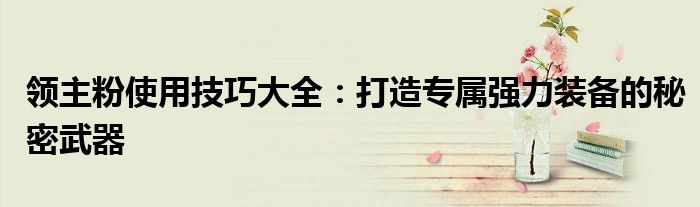领主粉使用技巧大全:打造专属强力装备的秘密武器