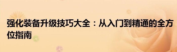 强化装备升级技巧大全:从入门到精通的全方位指南