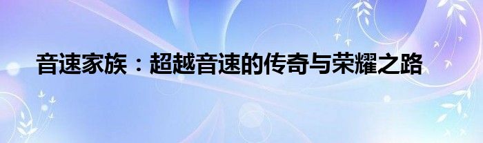 “音速家族”作为一个独特的群体,代表着人类对速度的追求与探索。他们不仅拥有超越音速的速度,更在各个领域展现出色的实力,成为时代的佼佼者。接下来,让我们一起走进这个充满激情与荣耀的家族,感受他们的传奇故事。