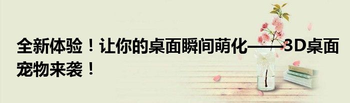 全新体验!让你的桌面瞬间萌化——3D桌面宠物来袭!