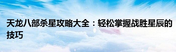 天龙八部杀星攻略大全:轻松掌握战胜星辰的技巧