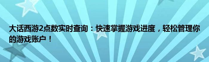 大话西游2点数实时查询:快速掌握游戏进度,轻松管理你的游戏账户!