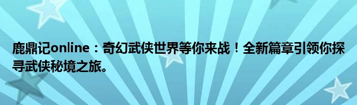 标题介绍:《鹿鼎记online》—— 深度探秘武侠江湖的新篇章