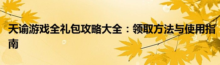 天谕游戏全礼包攻略大全:领取方法与使用指南
