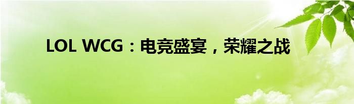 LOL WCG:电竞盛宴,荣耀之战