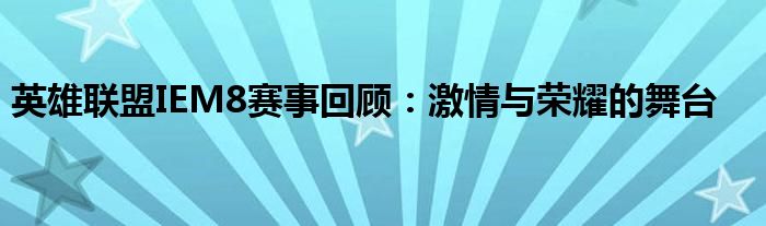 英雄联盟IEM8赛事回顾:激情与荣耀的舞台